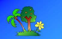 tem árvores, flores,